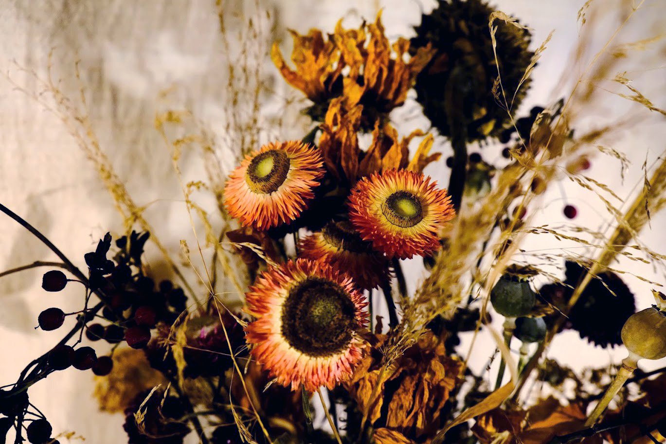 All dried flower bouquets and wreaths are delicate by nature. They’re best displayed in a dry spot, away from direct sunlight.